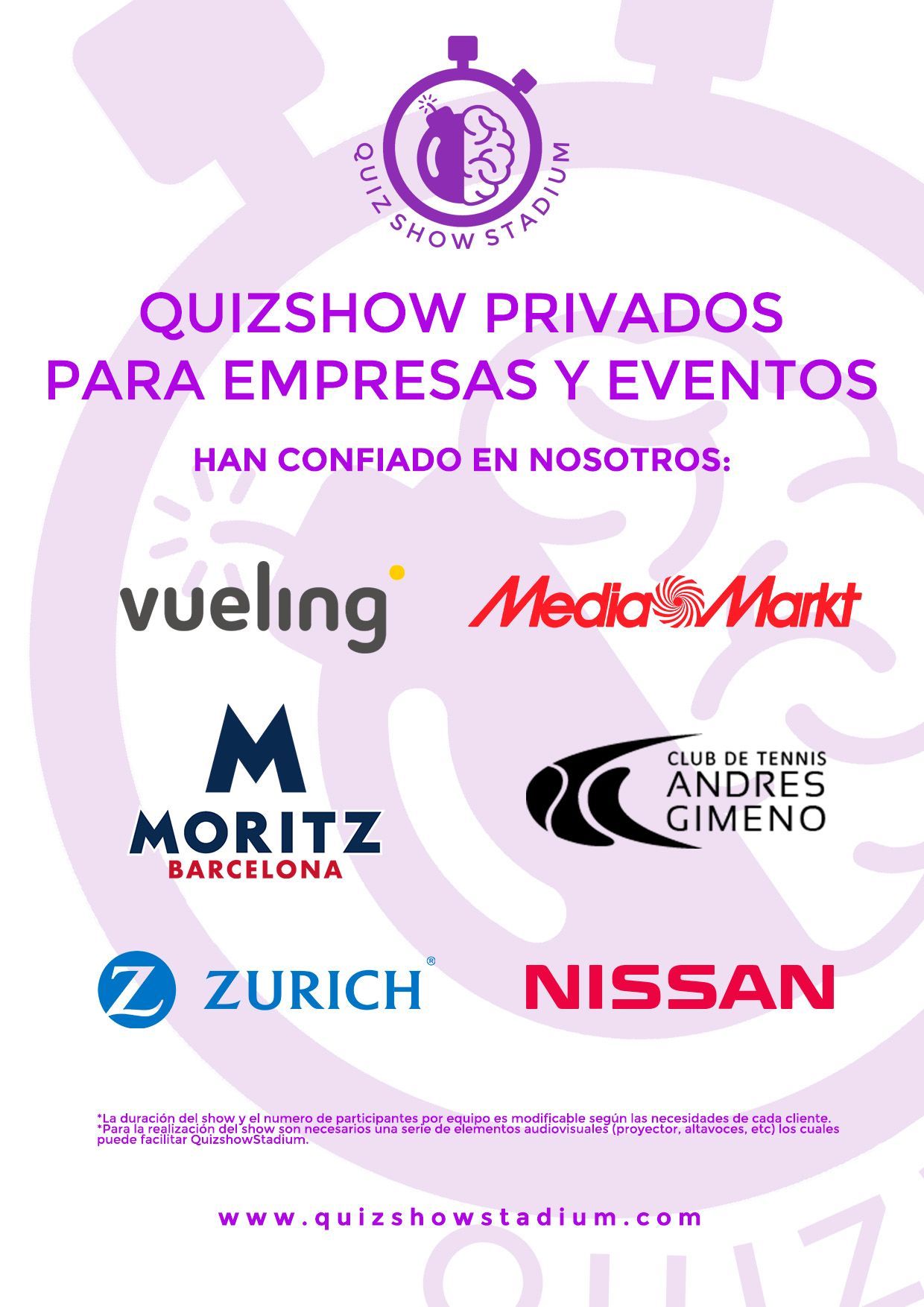 Si ademas de fiesta quieres algo diferente a todo lo demás, puedes añadir un QuizShow privado totalmente personalizado para acompañar la fiesta.